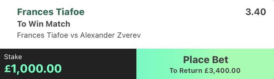 - ❌ LOST @ 3.40 | Tiafoe to beat Zverev | ATP Indian Wells