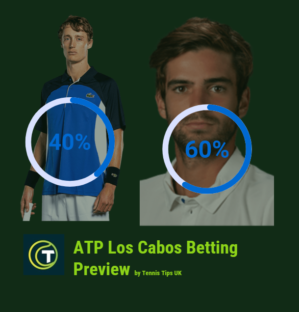 His opponent is a marginal favourite and with odds of 1.50-1.60 this suggests approximately a 60% chance of progressing to the next stage of ATP Los Cabos 2024.