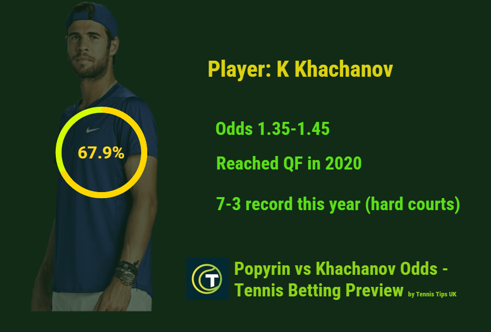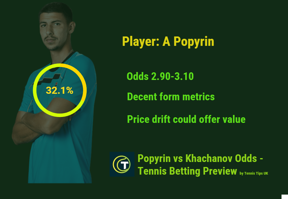 As always thought the focus of our analysts at Tennis Tips UK’s is where the best tennis betting opportunities are present from the large range of Popyrin vs Khachanov odds. The primary market of that has garnered our attention is the match winner (money line) which could present value at certain price thresholds.